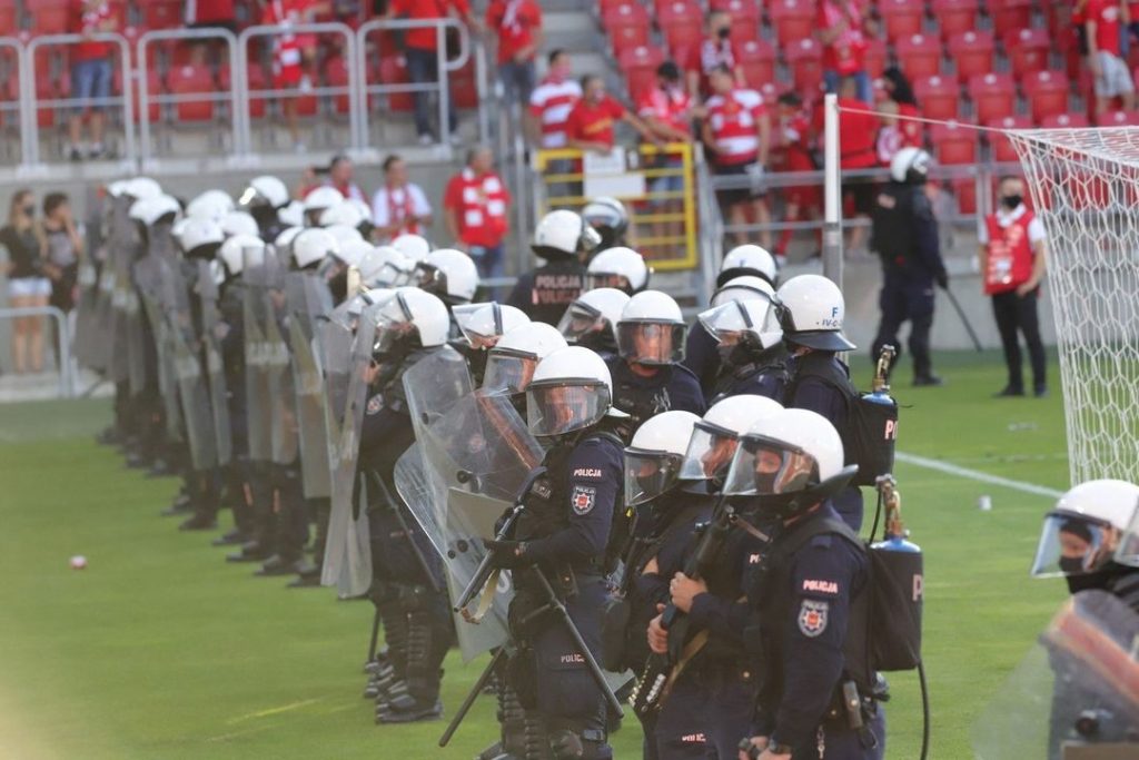 Piłkarze Widzewa w Fortuna 1 Lidze. To prawdopodobnie jedyny pozytyw sobotniego popołudnia dla łódzkiego klubu. Piłkarze nie zdołali stanąć na wysokości zadania, za to dali o sobie znać kibole, którzy po końcowym gwizdku doprowadzili do patologicznych sytuacji.