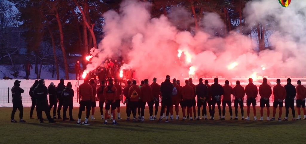 Kibice na treningu Korony Kielce. Wsparli zespół przed meczem z Widzewem [WIDEO]