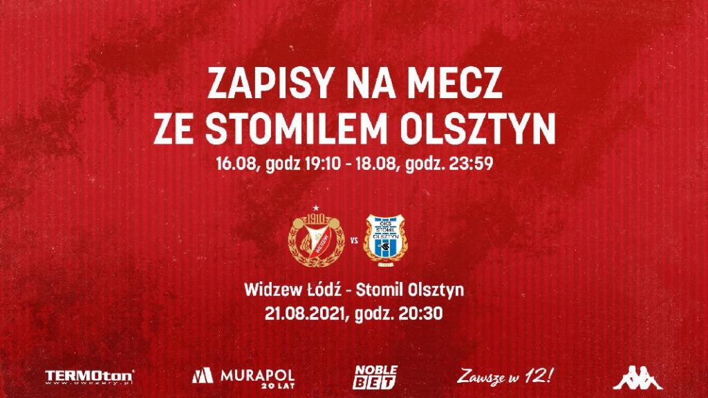 Już tylko dziś (w środę) do 23:59 trwają zapisy na najbliższy mecz przy al. Piłsudskiego, w którym Widzew Łódź zagra ze Stomilem Olsztyn.