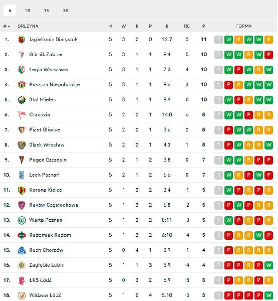Biorąc pod uwagę pięć ostatnich kolejek w PKO Ekstraklasie, najgorszą drużyną w lidze jest Widzew. Drużyna z Serca Łodzi kroczy niestety w stronę spadku. Za nami pierwsza wiosenna kolejka sezonu 2023/