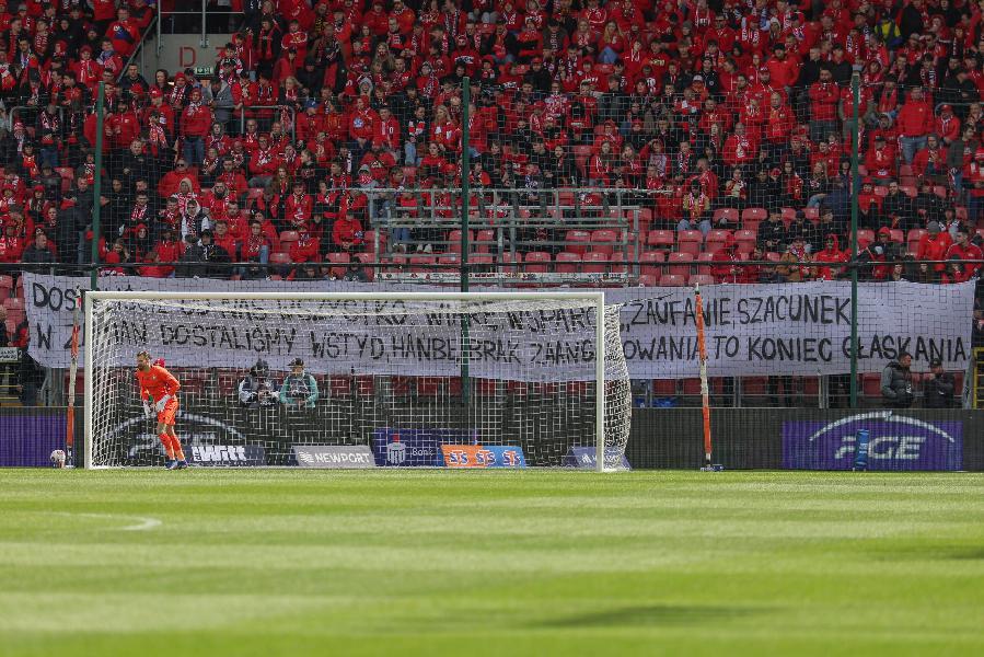 Widzew Łódź gra z Motorem Lublin o życie, ale w tym meczu nie może liczyć na tradycyjny doping. Na trybunie z najbardziej zagorzałymi kibicami gospodarzy pojawiły się transparenty o dosadnej treści.