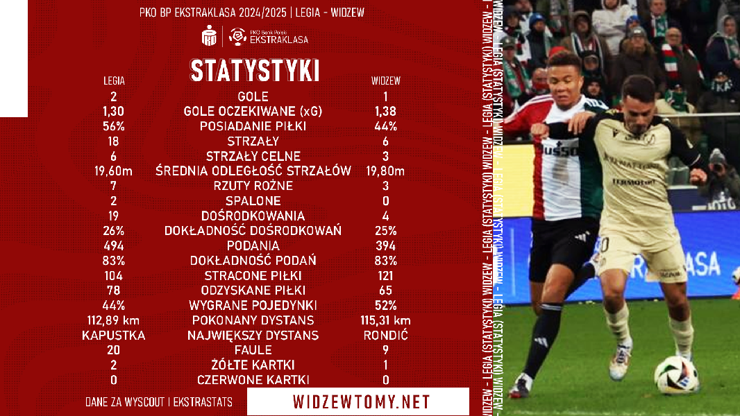 Zapraszamy do zapoznania się ze szczegółowymi statystykami spotkania 14. kolejki Ekstraklasy pomiędzy Legią Warszawa a Widzewem Łódź, jaki odbył się w minioną niedzielę. Wyjazdowa potyczka zakończyła się porażką drużyny Daniela Myśliwca 1:2. […]