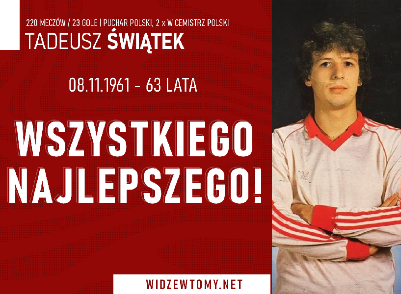63 lata kończy dziś Tadeusz Świątek, przez wiele lat związany z łódzkim Widzewem. Z tej okazji życzymy byłemu pomocnikowi zdrowia, wszelkiej pomyślności oraz wielu powodów do codziennego uśmiechu. Świątek urodził się 8 […]